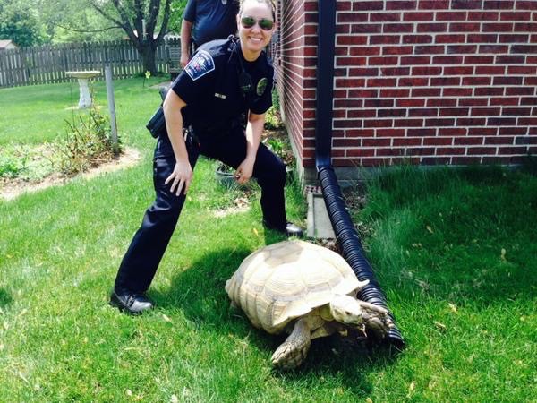 Fishers Police Sgt. Tom Weger tells WISH-TV that a homeowner called the police Friday when he saw the tortoise, thinking it probably needed to be rescued. Officials estimate the tortoise weighs at least 150 pounds.