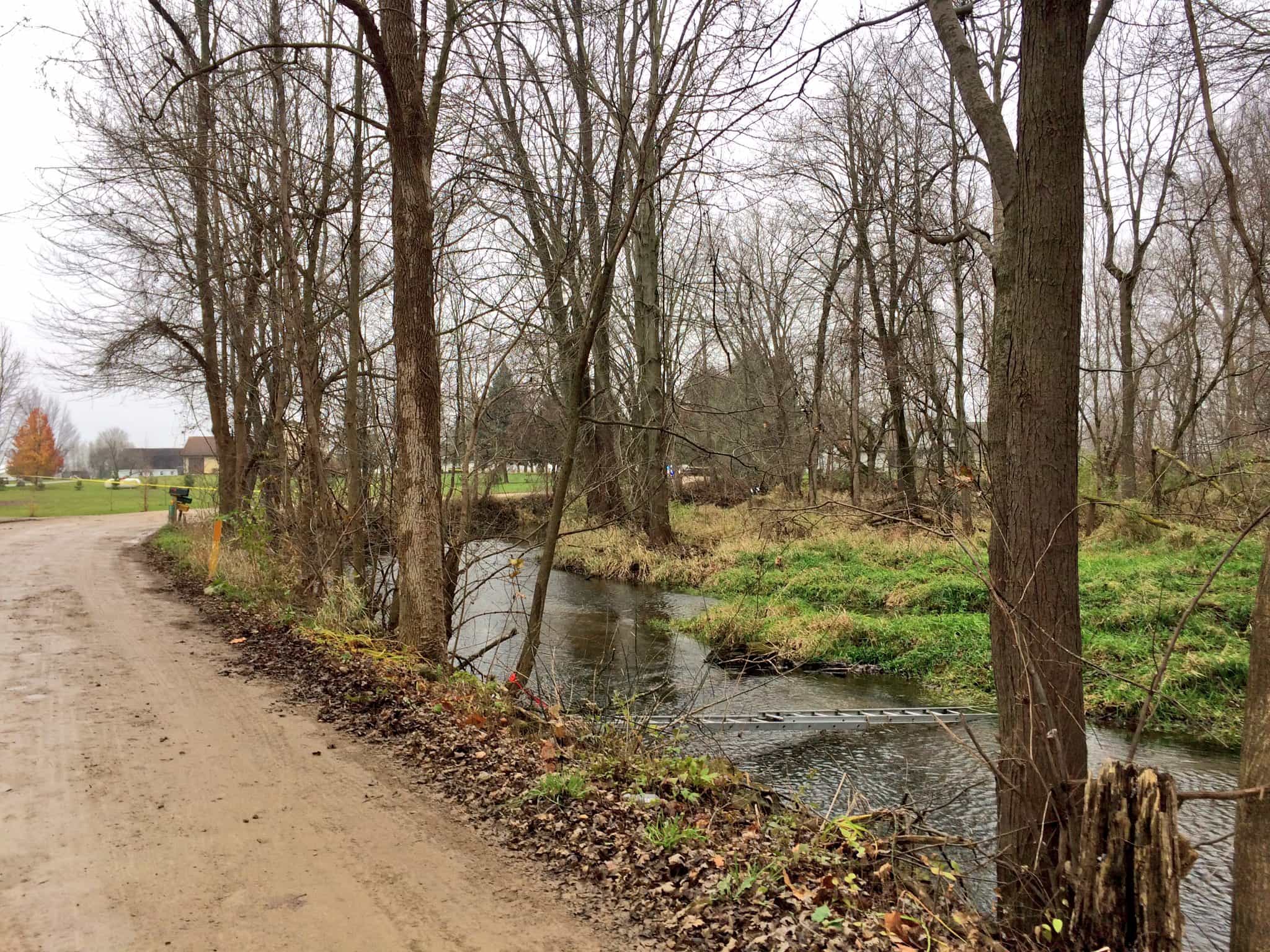 On scene in rural Elkhart County where a car went off the road, into nearby water. Confirmed fatalities. pic.twitter.com/F7Cpvtawh8