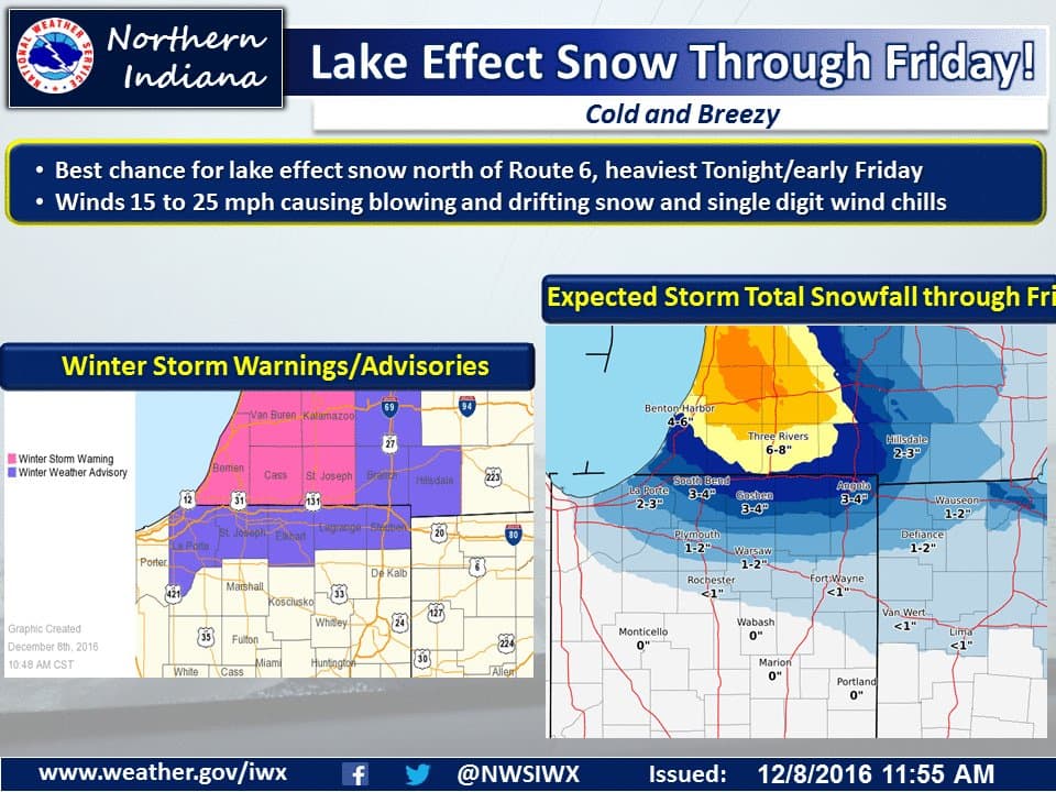 Here’s the latest advisory from the National Weather Service office in Northern Indiana: