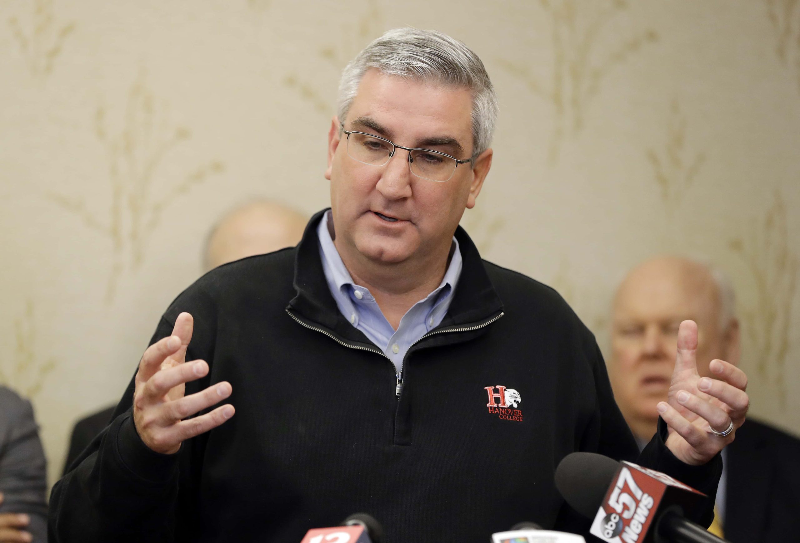Indiana Governor-elect Lt. Gov. Eric Holcomb speaks during a news conference Wednesday, Nov. 9, 2016, in Indianapolis. Holcomb won election over Democratic former state House Speaker John Gregg to continue a 12-year run of Republican governors in Indiana. (AP Photo/Darron Cummings)
