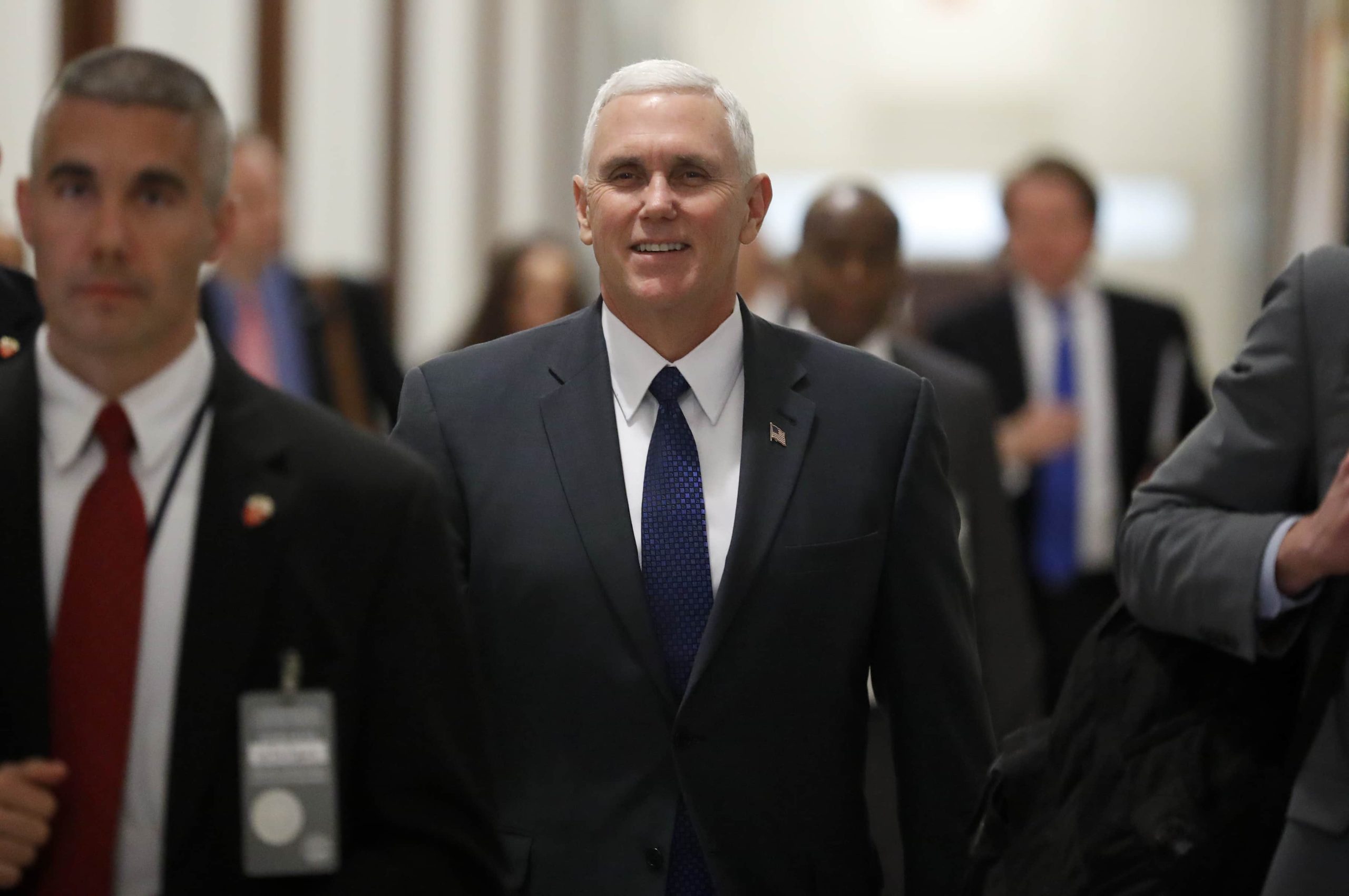 Vice President-elect Mike Pence walks through the halls of Russell Senate Office Building on Capitol Hill in Washington, Tuesday, Jan. 17, 2017. (AP Photo/Carolyn Kaster)