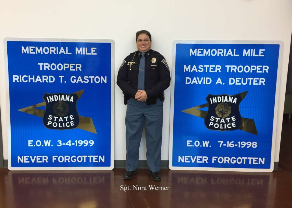 Indiana State Police Sergeant Nora Werner and the Indiana Toll Road Concession Company have teamed up to place memorial signs along the Indiana Toll Road.