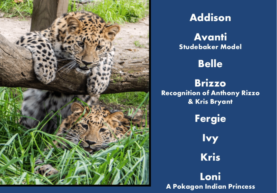 The South Bend Cubs have submitted eight name ideas for a pair of Amur leopard girls at the Potawatomi Zoo.