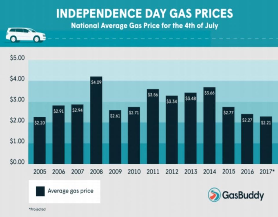 “It’s thrilling to see gas prices falling just in time for the most-traveled summer holiday. Perhaps we can finally get rid of the myth that gas prices go up for the holiday,” said Patrick DeHaan, GasBuddy senior petroleum analyst. “Most importantly, motorists are getting a well-deserved break at the pump after years of high summer gas prices. This is like Christmas in July, instead of seeing fireworks at the pumps like we saw just a few short years ago.”