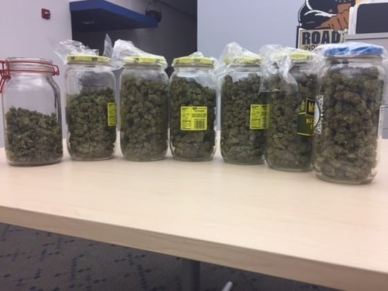 However, when an officer was talking to Herbaugh, he reportedly smelled marijuana coming from the car. Another trooper assisted and, after a probable cause search, almost two and a half pounds of marijuana was discovered in large glass pickle jars.