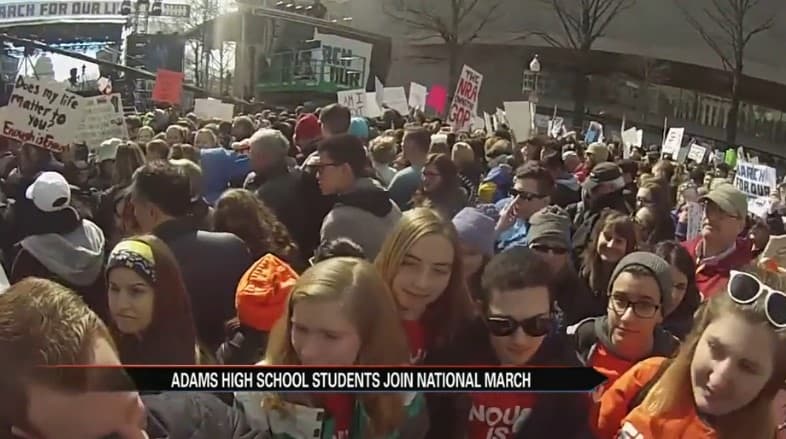 Saturday’s marches come in the wake of a shooting that left 17 dead at a Florida high school last month. In Indianapolis, thousands of students and their supporters rallied at the Indiana Statehouse. One speaker, DeAndra Yates, talked about her son being paralyzed after he was struck with a stray bullet when he was 13.