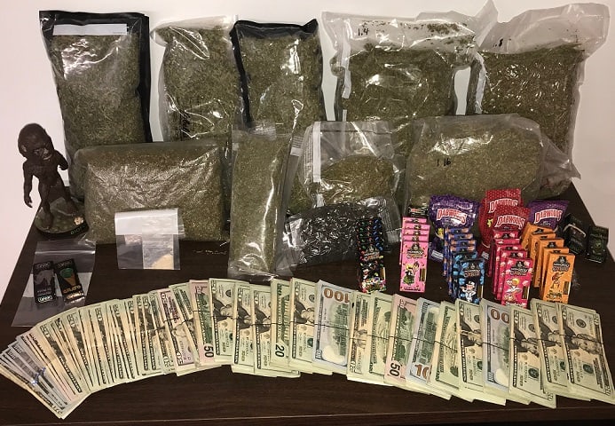NET 43 was then called in. Task force members discovered more than 7.25 lbs of marijuana, 1.6 grams of methamphetamine, narcotic paraphernalia, 60 grams of THC oil and more than $21,000 in cash.
