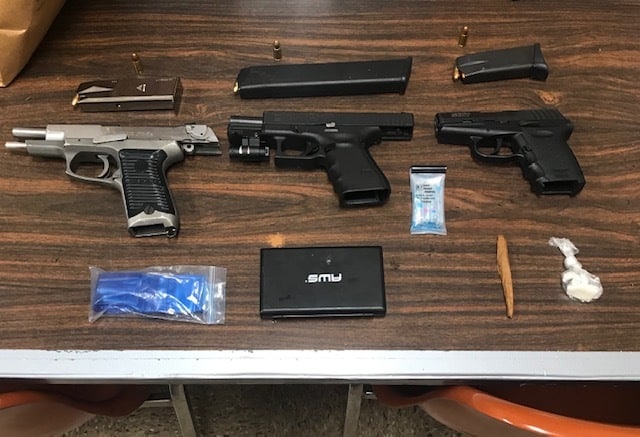 A second handgun was found under the front passenger seat with a shaved off serial number.