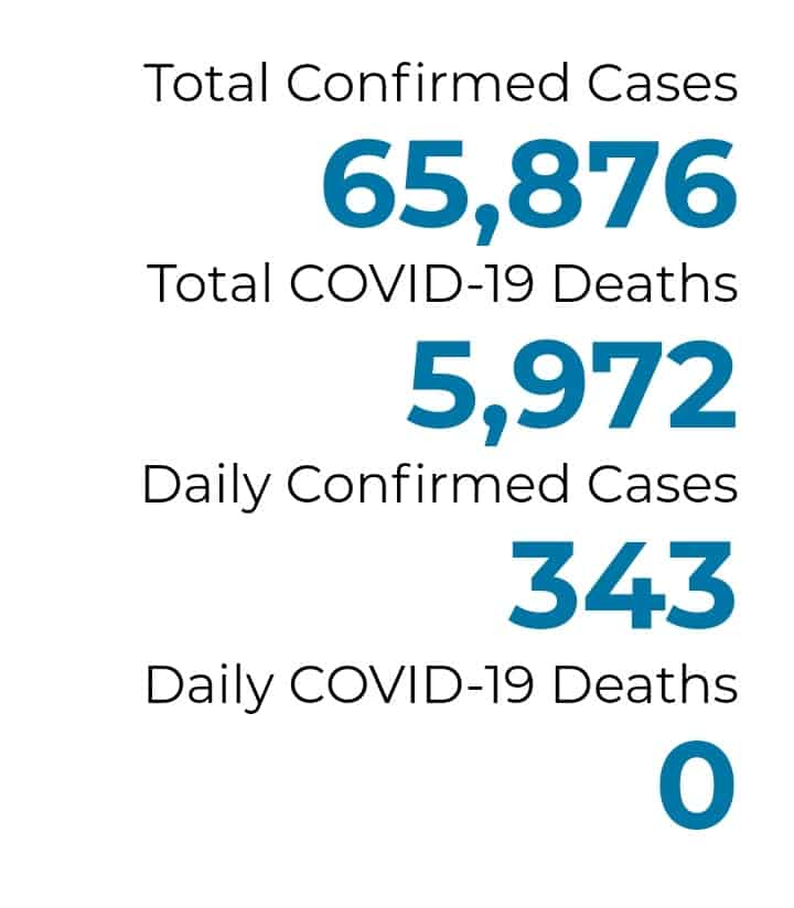 There were 343 new cases reported, moving the state’s total to 65,876. But no new deaths were reported in the state on Sunday.