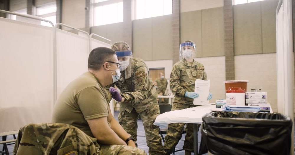 The Hoosier Guardsmen who received the vaccination have been on the frontline of pandemic response missions including at long-term care facilities, COVID testing sites, protective equipment distribution warehouses and food banks.