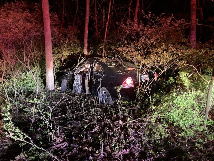 A 19-year-old Columbia City man was hurt when his car crashed into a wooded area Tuesday night.