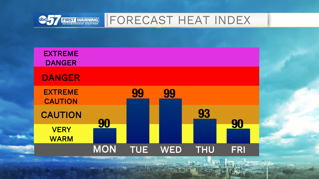 There will be lots of heat and humidity across Indiana all week long along with isolated chances of showers and thunderstorms.