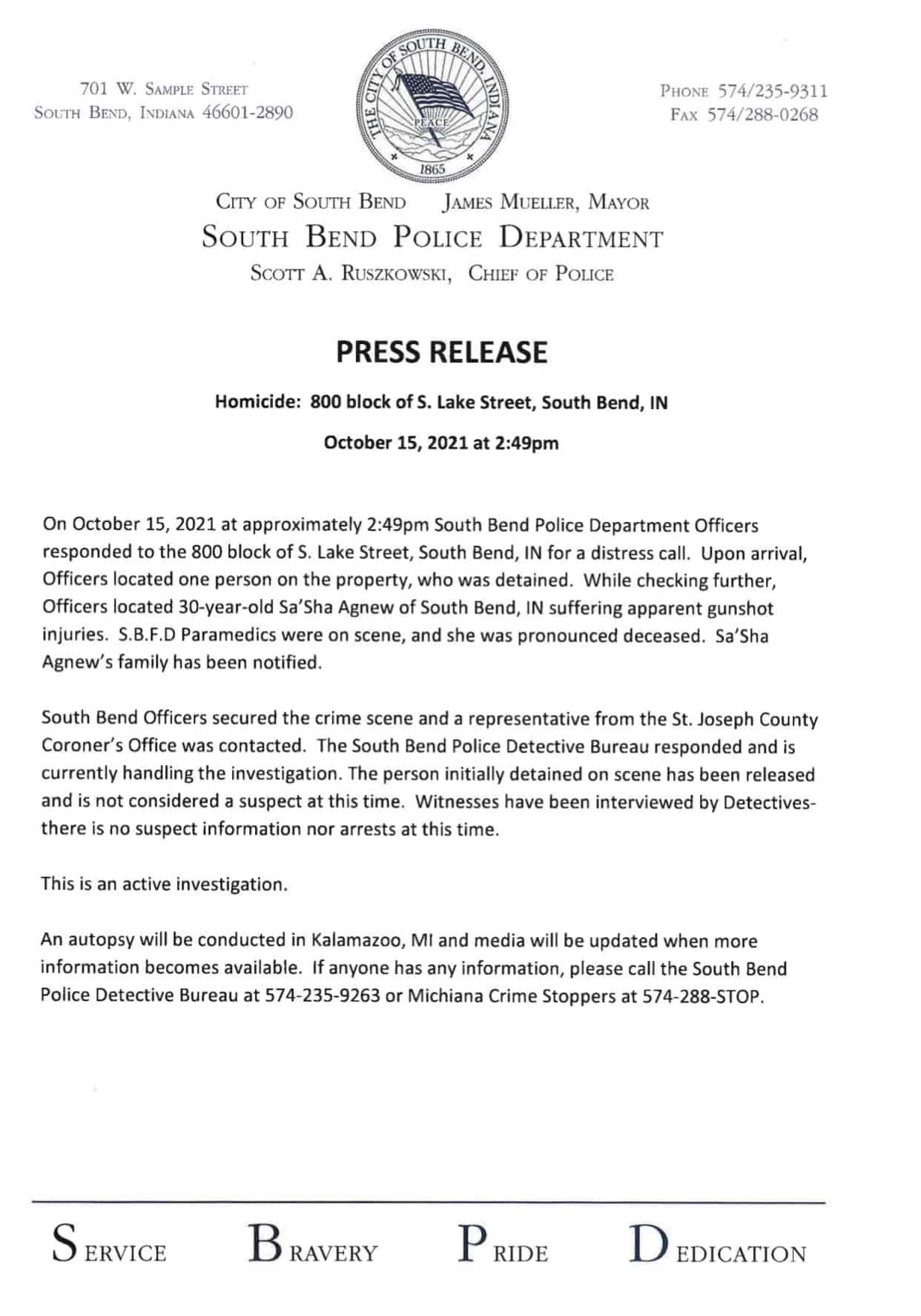 Woman found shot to death on S. Lake Street in South Bend identified