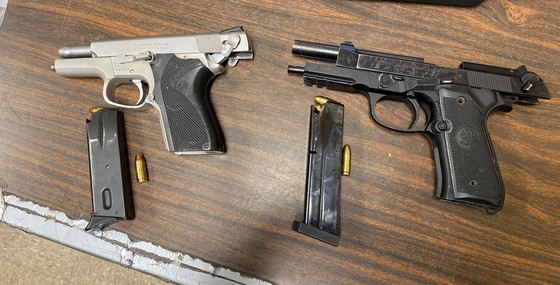 During the stop, the trooper developed probable cause for a vehicle search, during which two handguns were found in the center console along with 50 grams of marijuana.