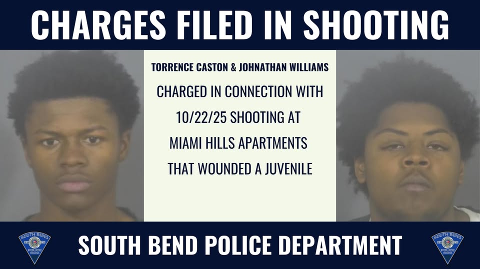 Working with the St. Joseph County Prosecutor’s Office, detectives secured charges against both men. Caston is charged with Robbery Resulting in Bodily Injury and Battery by Means of a Deadly Weapon. Williams faces a charge of Robbery Resulting in Bodily Injury, along with an additional count of Resisting Law Enforcement after he allegedly tried to flee during a related search warrant.
