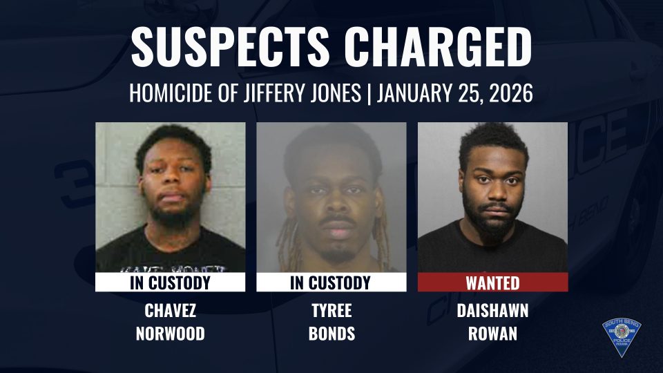 Detectives have identified three suspects in the case: 29-year-old Chavez Norwood of Chicago, 32-year-old Tyree Bonds of South Bend, and 26-year-old Daishawn Rowan of Chicago.