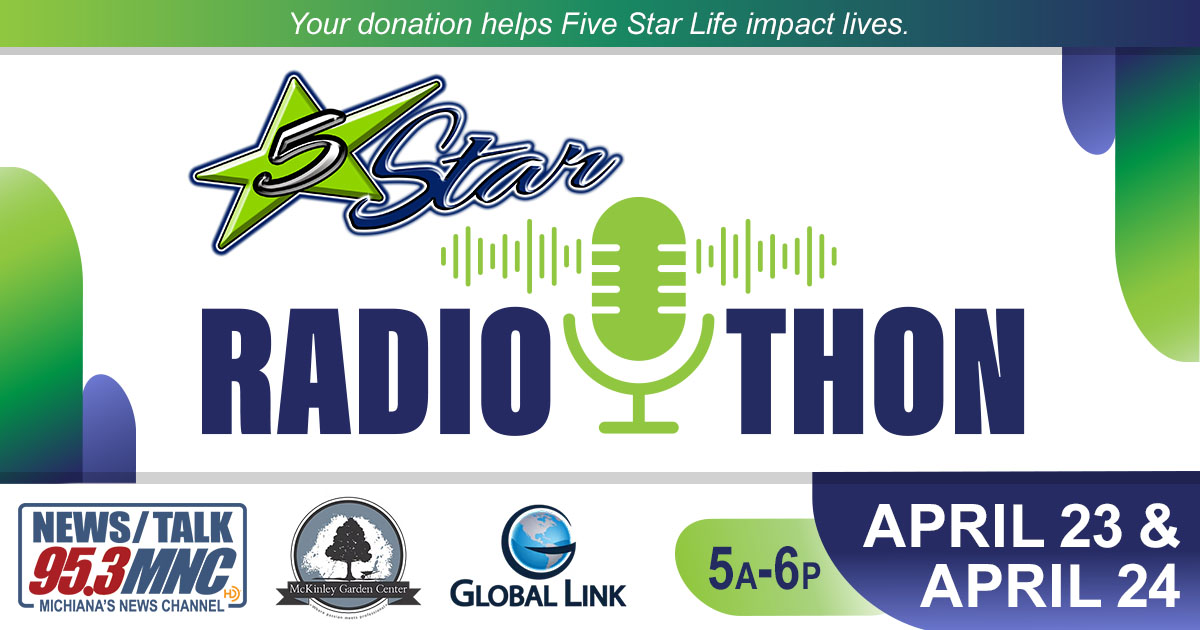 Join 95.3 MNC today and tomorrow, April 23rd & 24th, from 5 AM to 6 PM for the 5 Star Radiothon, presented by Global Link Distribution and McKinley Garden Center.